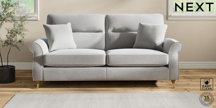 7.2.10 Ashford Highback 3 Seater Sofa Tweedy Blend Easy Clean Light Silver Grey Castor - Light | Made Click here to use our website with more accessibility support, for example screen readers