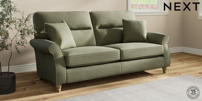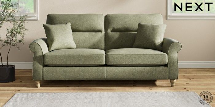 7.2.10 Ashford Highback 3 Seater Sofa Tweedy Chenille Mid Moss Green Low Turned - Light | Made Click here to use our website with more accessibility support, for example screen readers