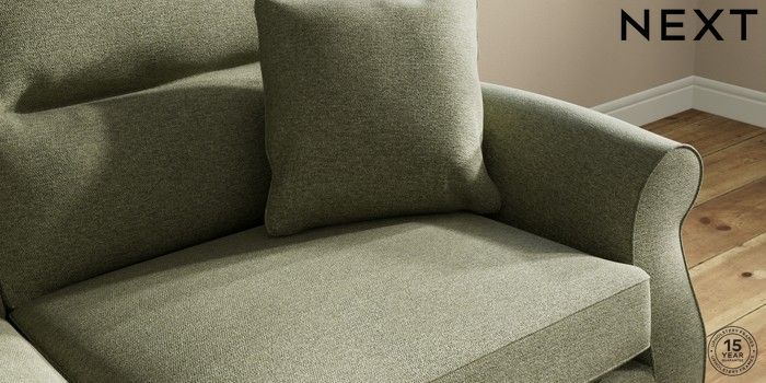 7.2.10 Ashford Highback 3 Seater Sofa Tweedy Chenille Mid Moss Green Modern Turned Metal Cap - Mid | Made Click here to use our website with more accessibility support, for example screen readers
