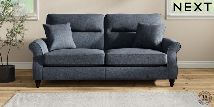 7.2.10 Ashford Highback 3 Seater Sofa Tweedy Chenille Navy Blue Low Turned - Dark | Made Click here to use our website with more accessibility support, for example screen readers