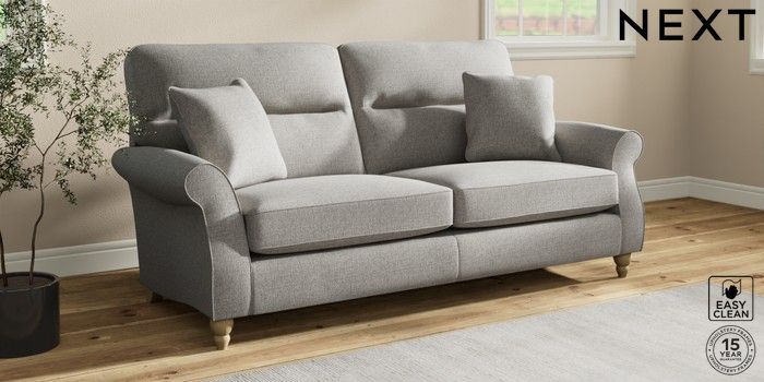 7.2.10 Ashford Highback 3 Seater Sofa Woven Chenille Easy Clean Light Grey Low Turned - Light | Made Click here to use our website with more accessibility support, for example screen readers