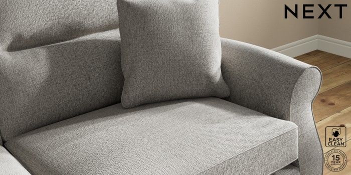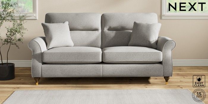 7.2.10 Ashford Highback 3 Seater Sofa Woven Chenille Easy Clean Light Grey Modern Turned Metal Cap - Mid | Made Click here to use our website with more accessibility support, for example screen readers