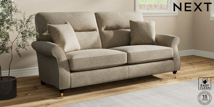 7.2.10 Ashford Highback 3 Seater Sofa Woven Chenille Easy Clean Mid Natural Castor - Dark | Made Click here to use our website with more accessibility support, for example screen readers