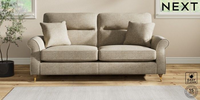 7.2.10 Ashford Highback 3 Seater Sofa Woven Chenille Easy Clean Mid Natural Castor - Light | Made Click here to use our website with more accessibility support, for example screen readers