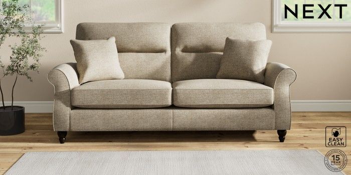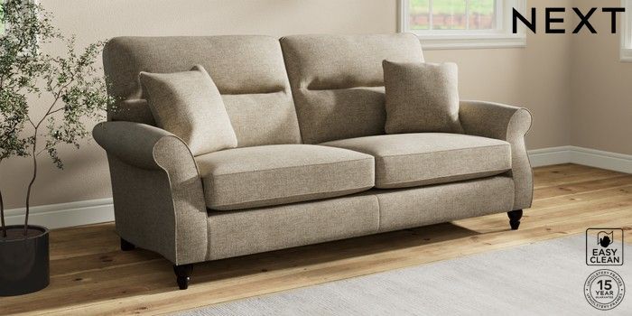 Sink into the Ashford high-back sofa, where country style meets ultimate comfort. Its generous size and elegant scroll arms give it a classic look. You'll love the extra back support from its higher design. The seats are designed for firm support and long-lasting comfort, with a special firmer high-density foam core sandwiched between soft foam toppers to give ultimate support, durability and recovery whilst offering a more tailored look that bounces back into shape – no need for constant plumping! These seat cushions are low maintainence and will return to their shape when they are not in use. We've added scatter cushions filled with a luxurious fibre mix for added comfort. Seat cushions are reversible.