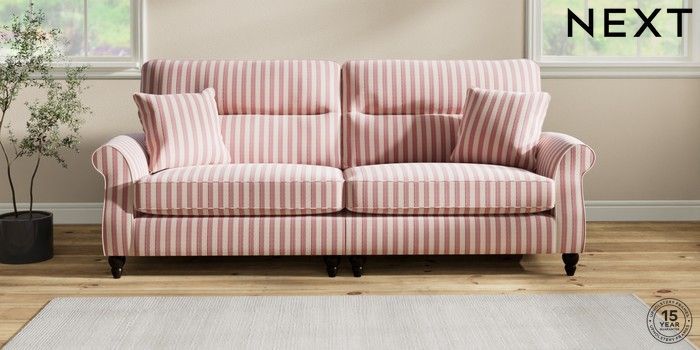 7.2.10 Ashford Highback 4 Seater Sofa Bold Chenille Stripe Dark Pink Low Turned - Dark | Made Click here to use our website with more accessibility support, for example screen readers