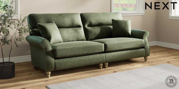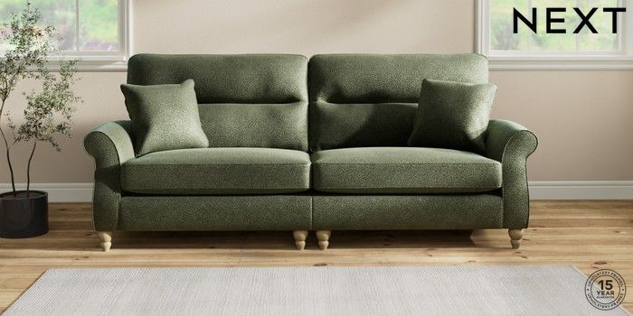 7.2.10 Ashford Highback 4 Seater Sofa Boucle Chenille Dark Moss Green Low Turned - Light | Made Click here to use our website with more accessibility support, for example screen readers