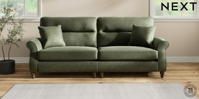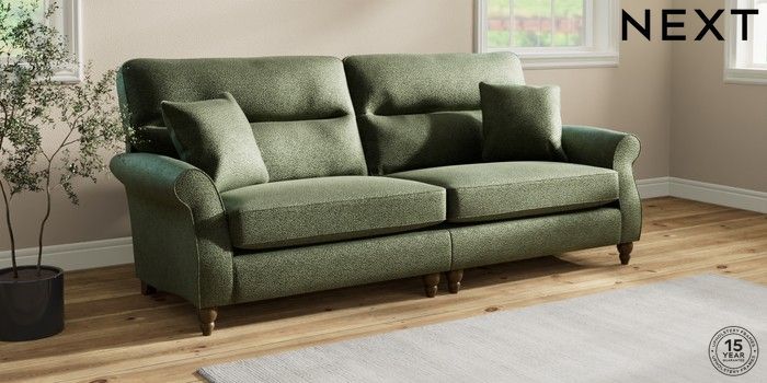 7.2.10 Ashford Highback 4 Seater Sofa Boucle Chenille Dark Moss Green Low Turned - Mid | Made Click here to use our website with more accessibility support, for example screen readers