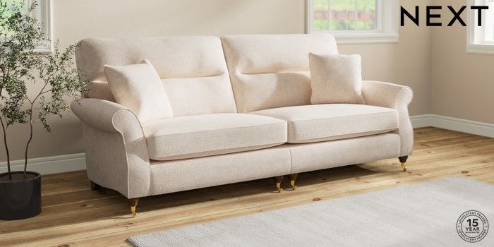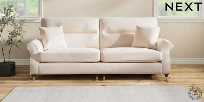 Sink into the Ashford high-back sofa, where country style meets ultimate comfort. Its generous size and elegant scroll arms give it a classic look. You'll love the extra back support from its higher design. The seats are designed for firm support and long-lasting comfort, with a special firmer high-density foam core sandwiched between soft foam toppers to give ultimate support, durability and recovery whilst offering a more tailored look that bounces back into shape – no need for constant plumping! These seat cushions are low maintainence and will return to their shape when they are not in use. We've added scatter cushions filled with a luxurious fibre mix for added comfort. Seat cushions are reversible.