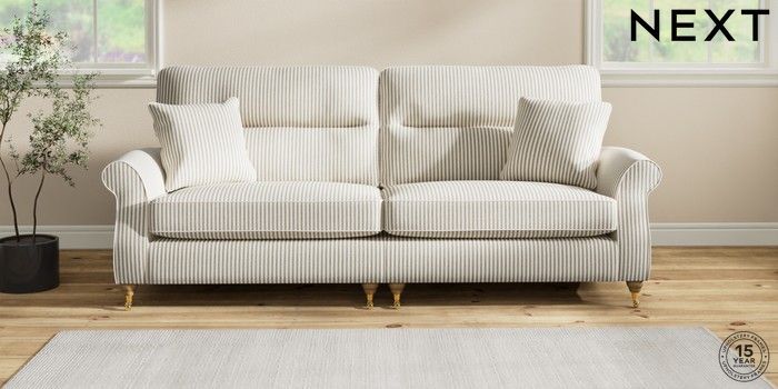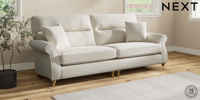 7.2.10 Ashford Highback 4 Seater Sofa Chenille Stripe Moss Green Castor - Light | Made Click here to use our website with more accessibility support, for example screen readers