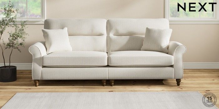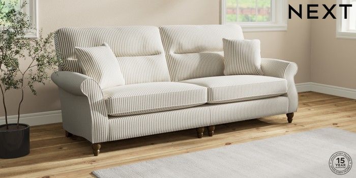 7.2.10 Ashford Highback 4 Seater Sofa Chenille Stripe Moss Green Low Turned - Mid | Made Click here to use our website with more accessibility support, for example screen readers