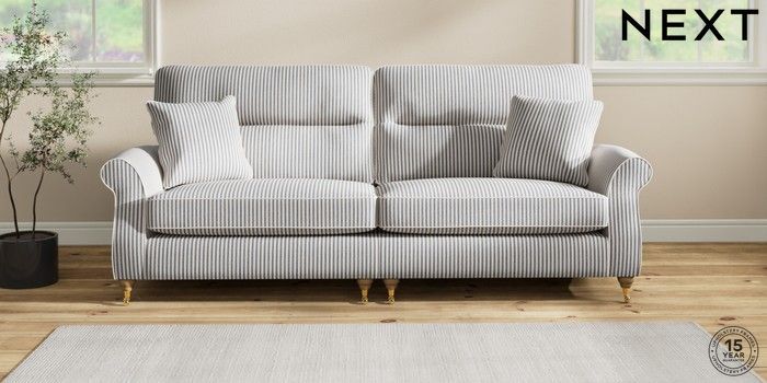 7.2.10 Ashford Highback 4 Seater Sofa Chenille Stripe Slate Blue Castor - Light | Made Click here to use our website with more accessibility support, for example screen readers
