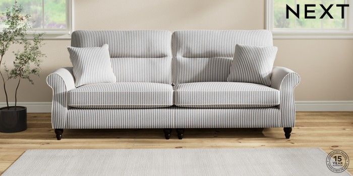 7.2.10 Ashford Highback 4 Seater Sofa Chenille Stripe Slate Blue Low Turned - Dark | Made Click here to use our website with more accessibility support, for example screen readers