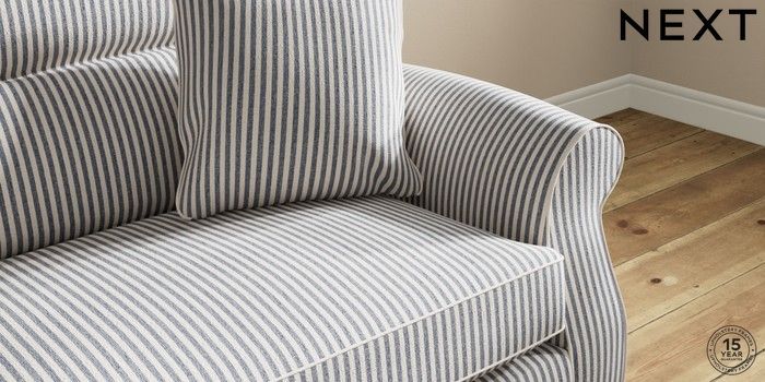 7.2.10 Ashford Highback 4 Seater Sofa Chenille Stripe Slate Blue Modern Turned Metal Cap - Mid | Made Click here to use our website with more accessibility support, for example screen readers