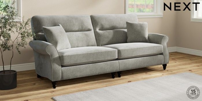 7.2.10 Ashford Highback 4 Seater Sofa Chunky Chenille Light Grey Low Turned - Dark | Made Click here to use our website with more accessibility support, for example screen readers