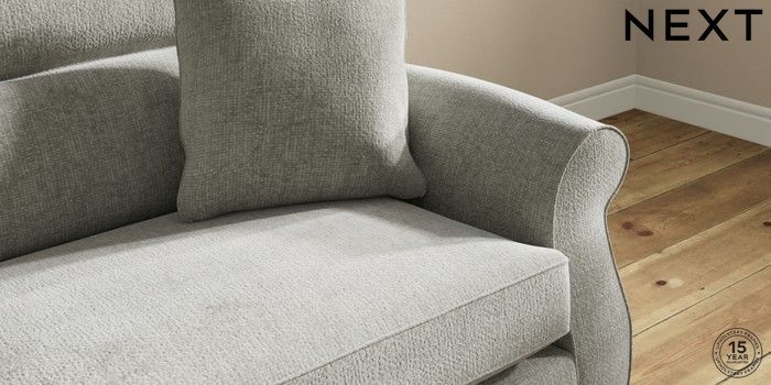 7.2.10 Ashford Highback 4 Seater Sofa Chunky Chenille Light Grey Modern Turned Metal Cap - Mid | Made Click here to use our website with more accessibility support, for example screen readers