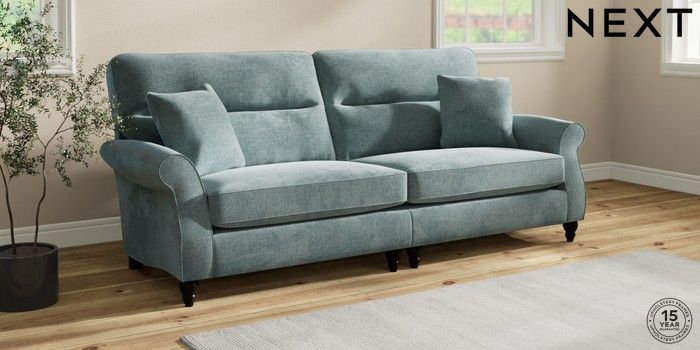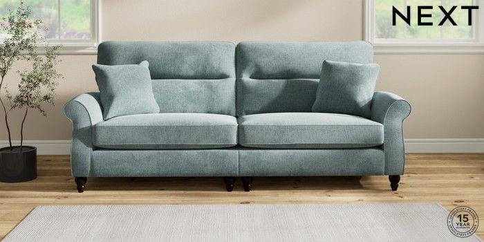7.2.10 Ashford Highback 4 Seater Sofa Chunky Chenille Light Teal Green Low Turned - Dark | Made Click here to use our website with more accessibility support, for example screen readers