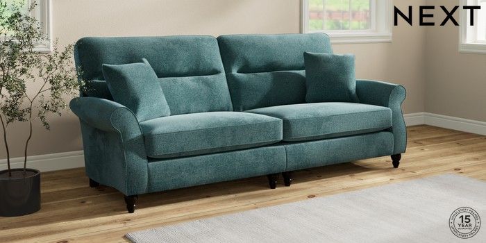 7.2.10 Ashford Highback 4 Seater Sofa Chunky Chenille Mid Teal Green Low Turned - Dark | Made Click here to use our website with more accessibility support, for example screen readers
