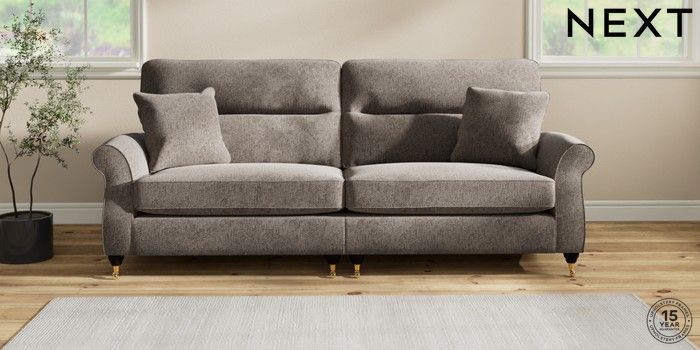 7.2.10 Ashford Highback 4 Seater Sofa Chunky Chenille Mink Brown Castor - Dark | Made Click here to use our website with more accessibility support, for example screen readers