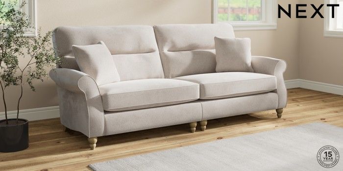 7.2.10 Ashford Highback 4 Seater Sofa Chunky Chenille Oyster Low Turned - Light | Made Click here to use our website with more accessibility support, for example screen readers