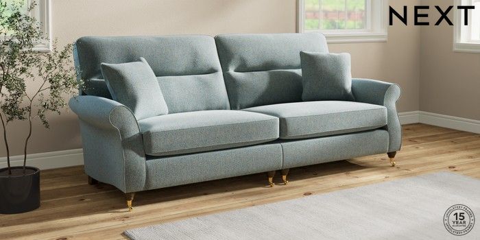 Sink into the Ashford high-back sofa, where country style meets ultimate comfort. Its generous size and elegant scroll arms give it a classic look. You'll love the extra back support from its higher design. The seats are designed for firm support and long-lasting comfort, with a special firmer high-density foam core sandwiched between soft foam toppers to give ultimate support, durability and recovery whilst offering a more tailored look that bounces back into shape – no need for constant plumping! These seat cushions are low maintainence and will return to their shape when they are not in use. We've added scatter cushions filled with a luxurious fibre mix for added comfort. Seat cushions are reversible.