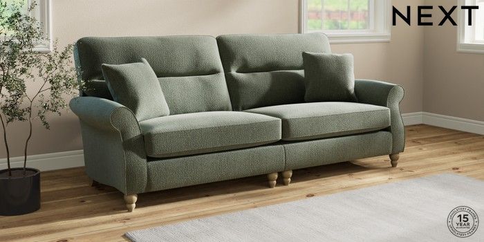7.2.10 Ashford Highback 4 Seater Sofa Chunky Texture Mid Forest Green Low Turned - Light | Made Click here to use our website with more accessibility support, for example screen readers