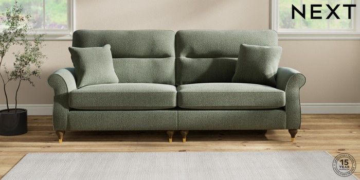 7.2.10 Ashford Highback 4 Seater Sofa Chunky Texture Mid Forest Green Modern Turned Metal Cap - Mid | Made Click here to use our website with more accessibility support, for example screen readers