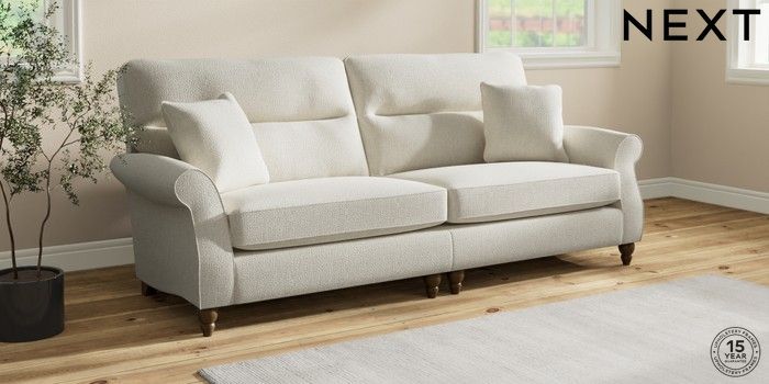 7.2.10 Ashford Highback 4 Seater Sofa Chunky Texture Oyster Low Turned - Mid | Made Click here to use our website with more accessibility support, for example screen readers