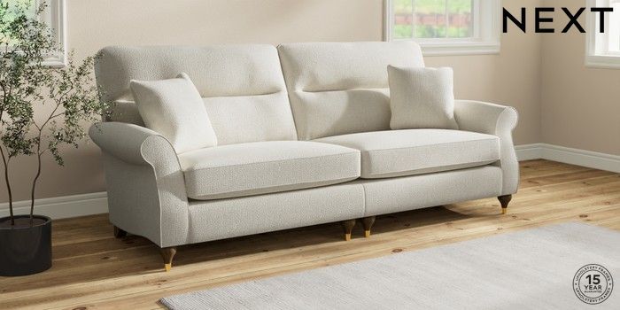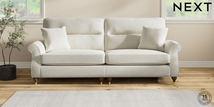 7.2.10 Ashford Highback 4 Seater Sofa Chunky Texture Oyster Modern Turned Metal Cap - Mid | Made Click here to use our website with more accessibility support, for example screen readers