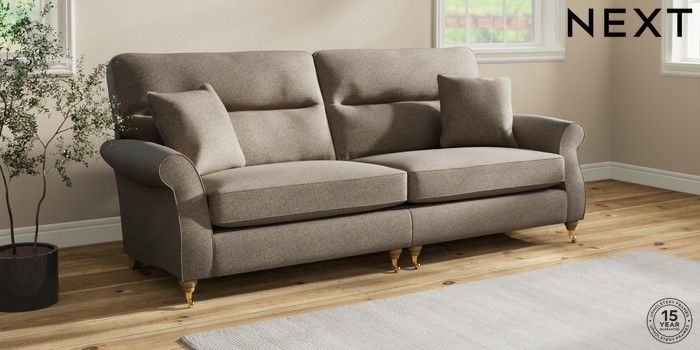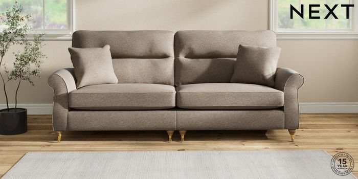 Sink into the Ashford high-back sofa, where country style meets ultimate comfort. Its generous size and elegant scroll arms give it a classic look. You'll love the extra back support from its higher design. The seats are designed for firm support and long-lasting comfort, with a special firmer high-density foam core sandwiched between soft foam toppers to give ultimate support, durability and recovery whilst offering a more tailored look that bounces back into shape – no need for constant plumping! These seat cushions are low maintainence and will return to their shape when they are not in use. We've added scatter cushions filled with a luxurious fibre mix for added comfort. Seat cushions are reversible.