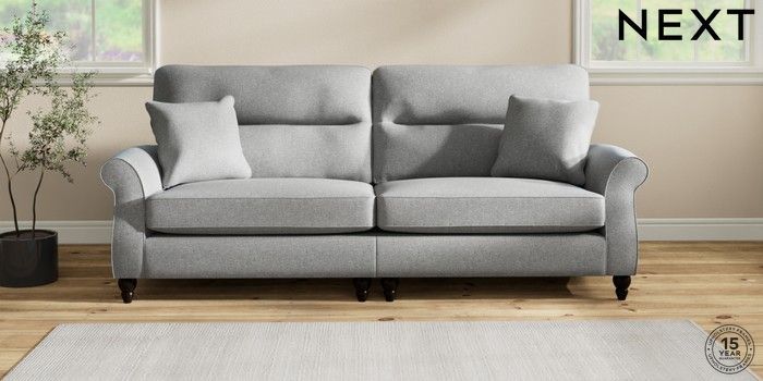7.2.10 Ashford Highback 4 Seater Sofa Chunky Weave Mid Grey Low Turned - Dark | Made Click here to use our website with more accessibility support, for example screen readers