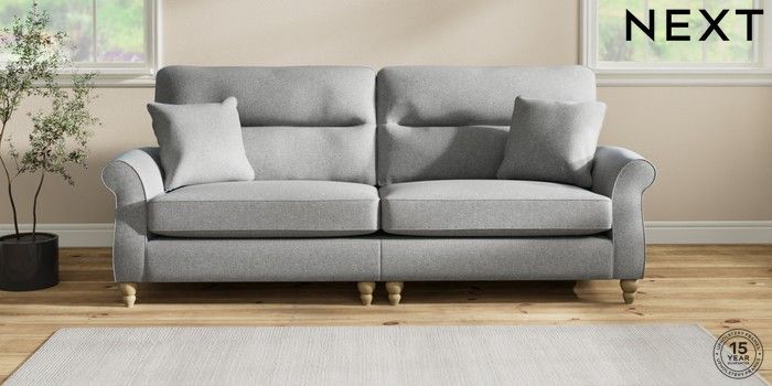 7.2.10 Ashford Highback 4 Seater Sofa Chunky Weave Mid Grey Low Turned - Light | Made Click here to use our website with more accessibility support, for example screen readers