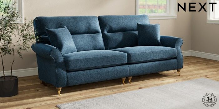 7.2.10 Ashford Highback 4 Seater Sofa Cotswold Chenille Dark Blue Castor - Light | Made Click here to use our website with more accessibility support, for example screen readers