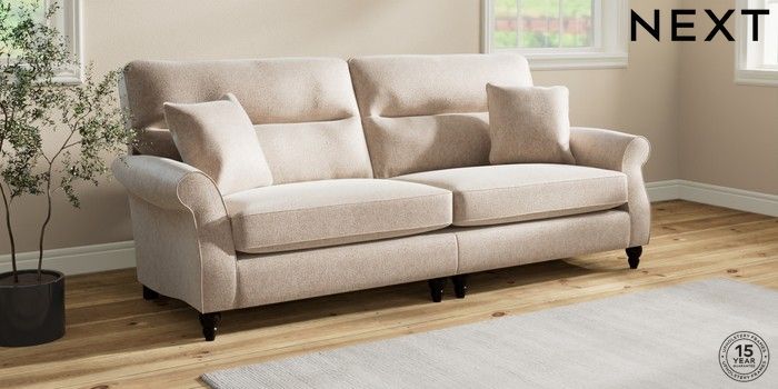 7.2.10 Ashford Highback 4 Seater Sofa Cotswold Chenille Light Natural Low Turned - Dark | Made Click here to use our website with more accessibility support, for example screen readers