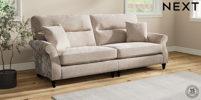 7.2.10 Ashford Highback 4 Seater Sofa Distressed Velour Mid Natural Low Turned - Dark | Made Click here to use our website with more accessibility support, for example screen readers