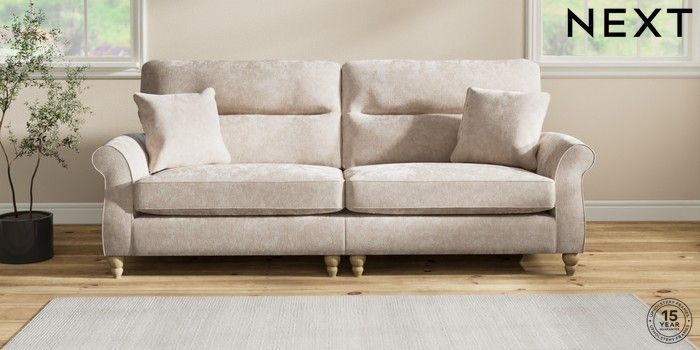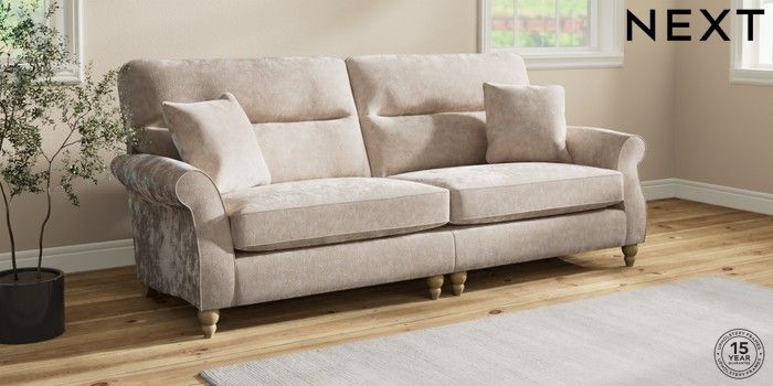 7.2.10 Ashford Highback 4 Seater Sofa Distressed Velour Mid Natural Low Turned - Light | Made Click here to use our website with more accessibility support, for example screen readers