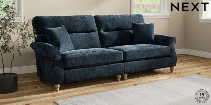 7.2.10 Ashford Highback 4 Seater Sofa Distressed Velour Midnight Blue Low Turned - Light | Made Click here to use our website with more accessibility support, for example screen readers