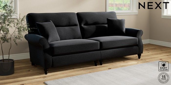 7.2.10 Ashford Highback 4 Seater Sofa Fine Chenille Easy Clean Black Low Turned - Dark | Made Click here to use our website with more accessibility support, for example screen readers
