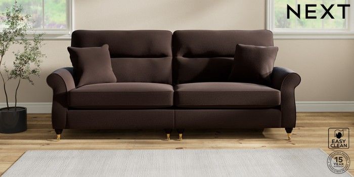 7.2.10 Ashford Highback 4 Seater Sofa Fine Chenille Easy Clean Chocolate Brown Castor - Dark | Made Click here to use our website with more accessibility support, for example screen readers