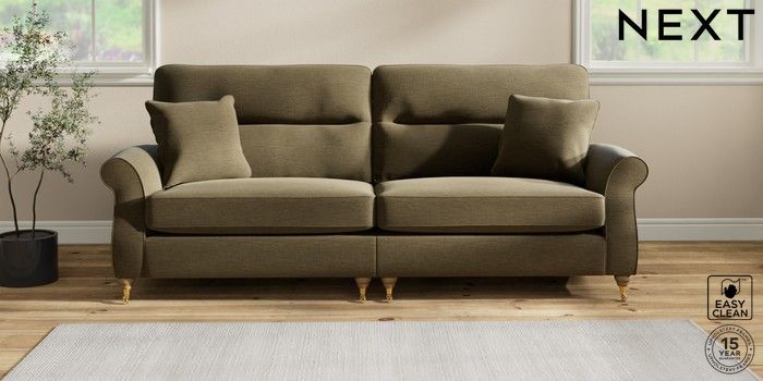 7.2.10 Ashford Highback 4 Seater Sofa Fine Chenille Easy Clean Dark Moss Green Castor - Light | Made Click here to use our website with more accessibility support, for example screen readers