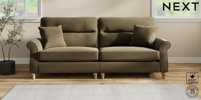 7.2.10 Ashford Highback 4 Seater Sofa Fine Chenille Easy Clean Dark Moss Green Low Turned - Light | Made Click here to use our website with more accessibility support, for example screen readers