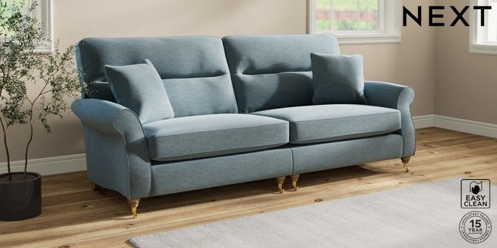 7.2.10 Ashford Highback 4 Seater Sofa Fine Chenille Easy Clean Mid Blue Castor - Light | Made Click here to use our website with more accessibility support, for example screen readers
