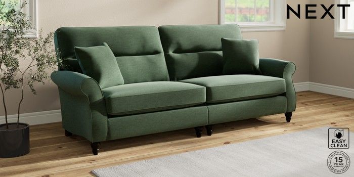 7.2.10 Ashford Highback 4 Seater Sofa Fine Chenille Easy Clean Mid Khaki Green Low Turned - Dark | Made Click here to use our website with more accessibility support, for example screen readers