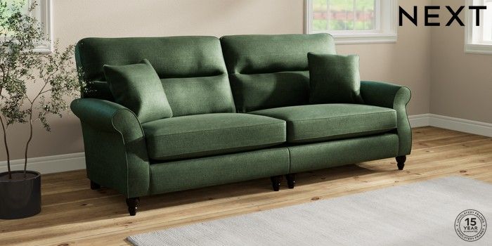 7.2.10 Ashford Highback 4 Seater Sofa Luxe Chenille Dark Green Low Turned - Dark | Made Click here to use our website with more accessibility support, for example screen readers