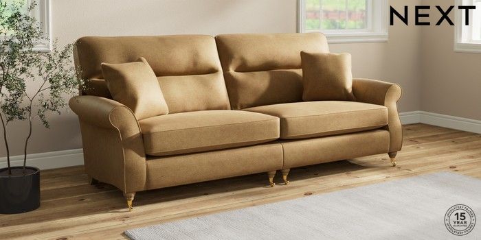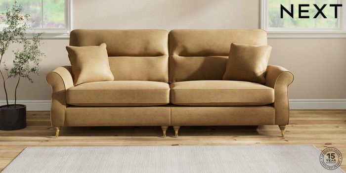 7.2.10 Ashford Highback 4 Seater Sofa Luxe Chenille Honey Yellow Castor - Light | Made Click here to use our website with more accessibility support, for example screen readers