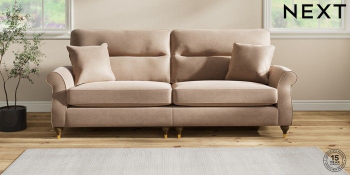 7.2.10 Ashford Highback 4 Seater Sofa Luxe Chenille Mid Natural Modern Turned Metal Cap - Mid | Made Click here to use our website with more accessibility support, for example screen readers