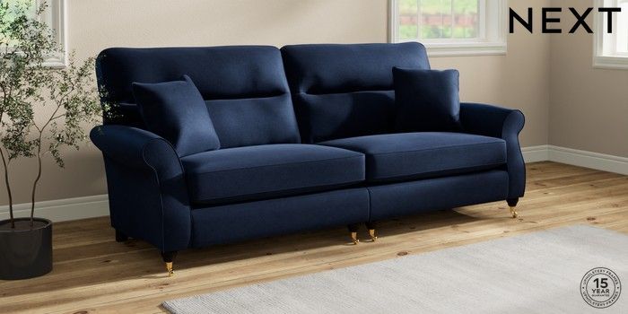 7.2.10 Ashford Highback 4 Seater Sofa Luxe Chenille Navy Blue Castor - Dark | Made Click here to use our website with more accessibility support, for example screen readers