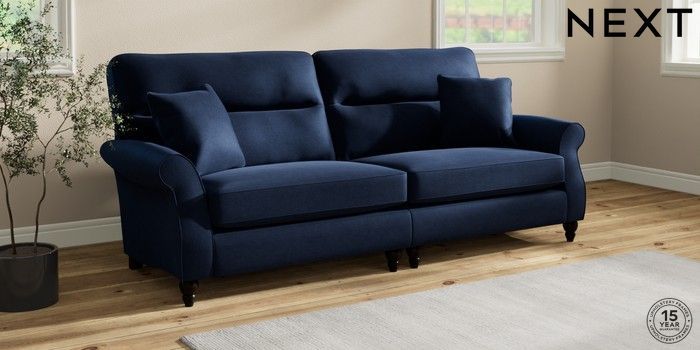 7.2.10 Ashford Highback 4 Seater Sofa Luxe Chenille Navy Blue Low Turned - Dark | Made Click here to use our website with more accessibility support, for example screen readers