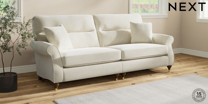 7.2.10 Ashford Highback 4 Seater Sofa Luxe Chenille Oyster Modern Turned Metal Cap - Mid | Made Click here to use our website with more accessibility support, for example screen readers