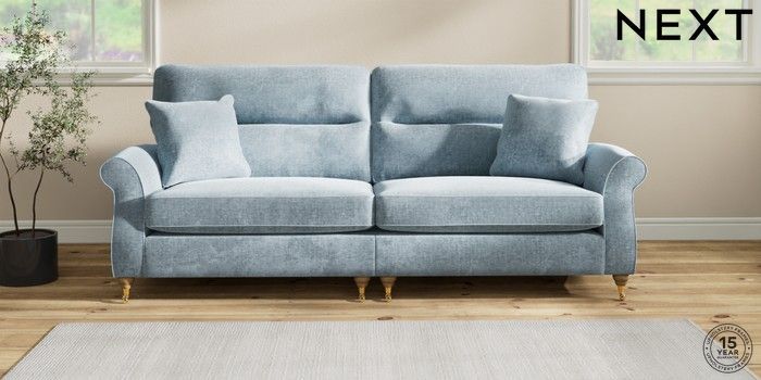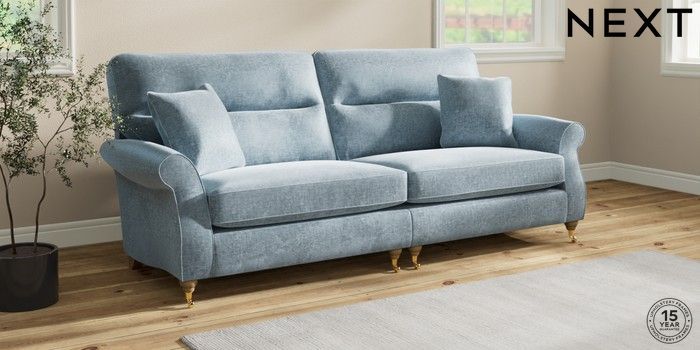 7.2.10 Ashford Highback 4 Seater Sofa Plush Chenille Light Blue Castor - Light | Made Click here to use our website with more accessibility support, for example screen readers